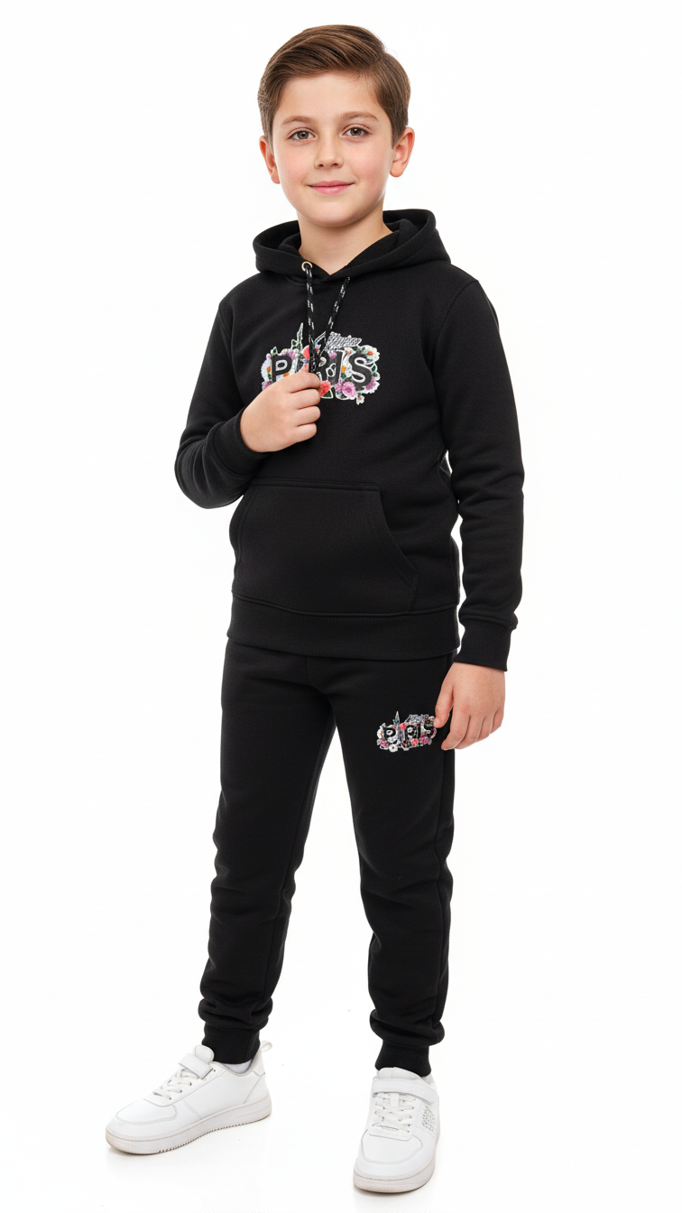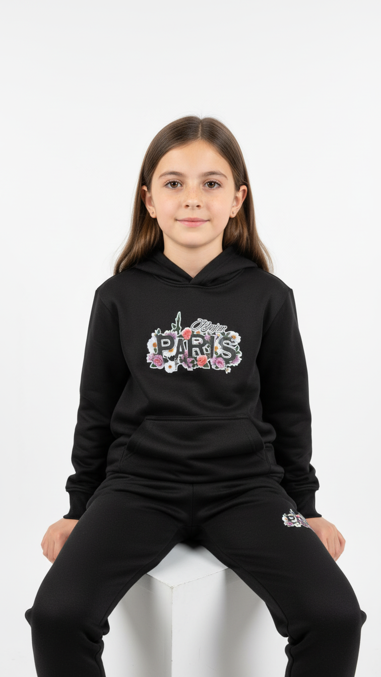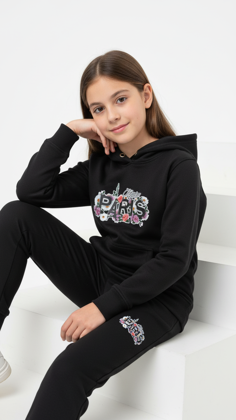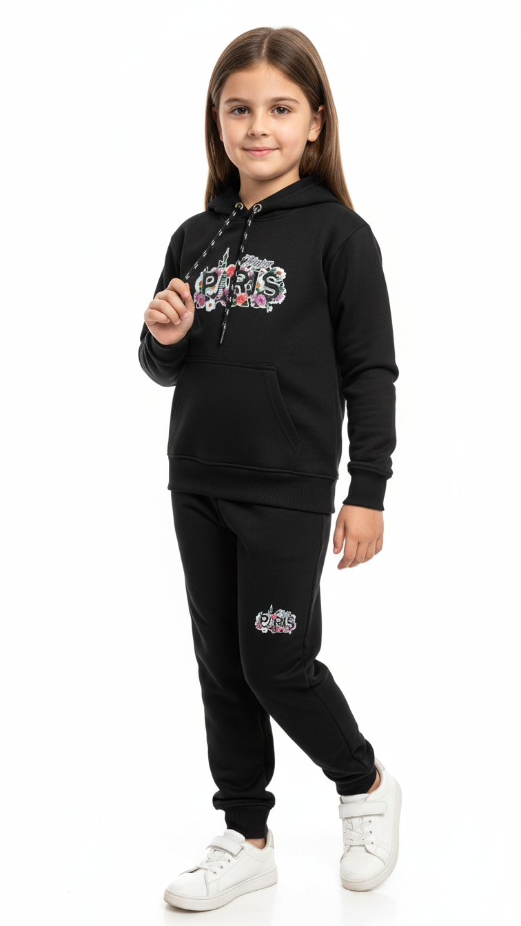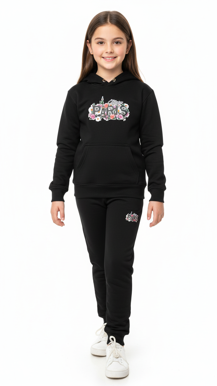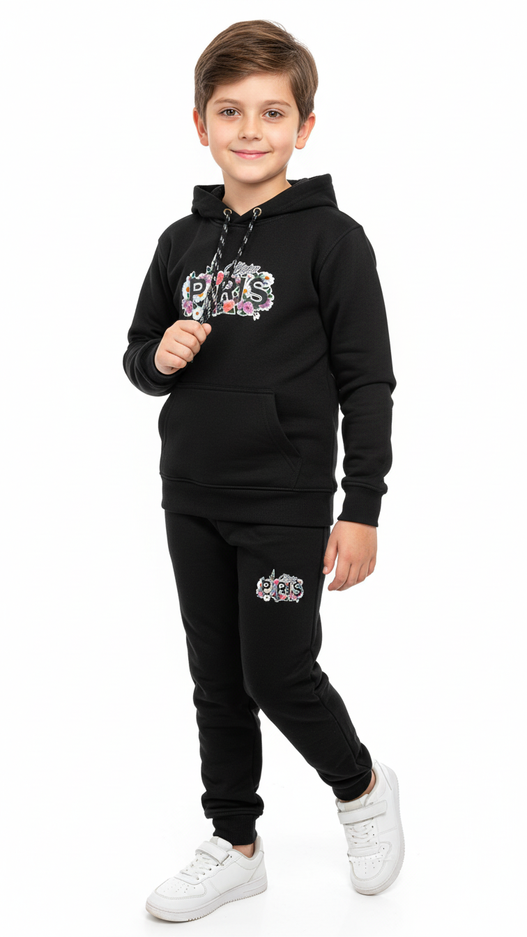 Paris Black Hoodie Tracksuit with Trouser Set for Boys and Girls