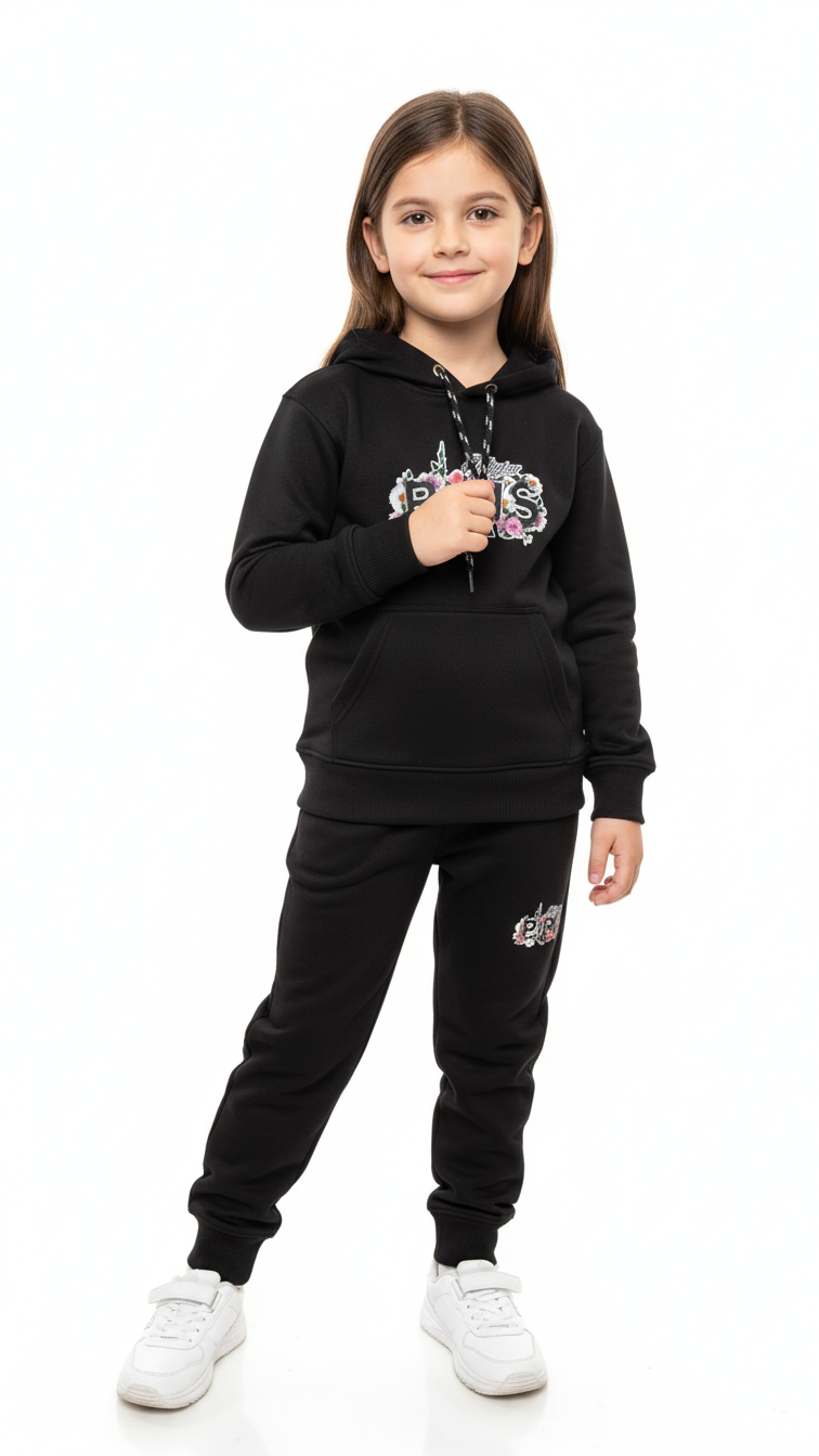 Give your child a stylish and comfortable everyday outfit with this Black Unisex Tracksuit for Boys and Girls. Designed for versatility and all-day wear, this matching tracksuit set is perfect for school, playtime, sports activities, travel, or relaxing at home.